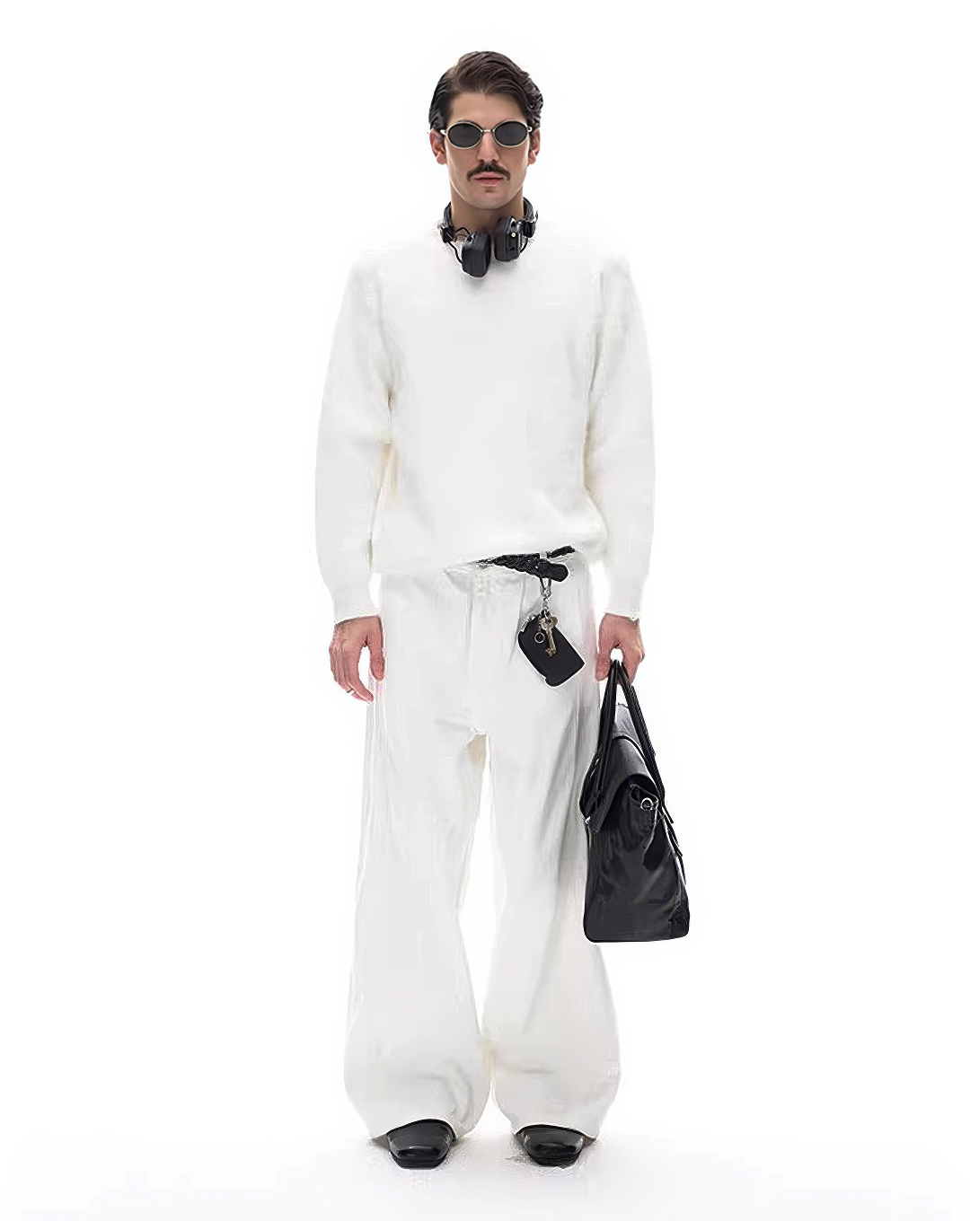 温かみのあるモヘア風のニット。思わず触れたくなるような柔らかな質感と、空気を編み込んだような軽やかな着心地が最大の特徴です。首元を優しく包み込むクルーネックと、肩のラインを落としたリラックスシルエットが、現代的な抜け感と上品な佇まいを両立させています。寒い季節のメインアイテムとしてだけでなく、アウターの中から覗かせる質感のアクセントとしても活躍し、洗練された大人の冬スタイルを完成させます。