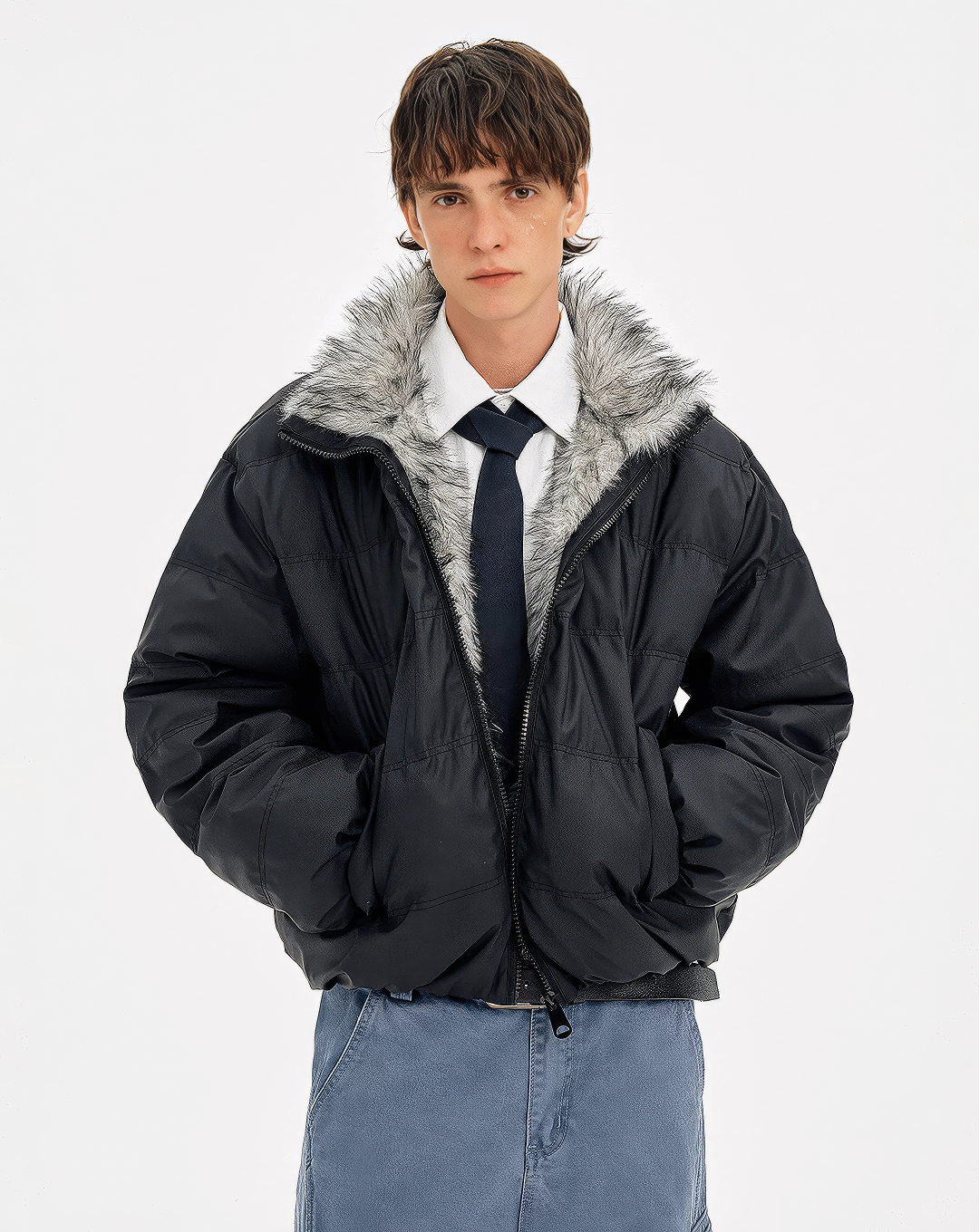 天候やシーンに合わせて表情を変えられる取り外し可能なファー裏地を配したダウンジャケット。マットな質感のシェルが描くボリューム感のあるシルエットは、ストリートな空気感を纏いながらも、襟元から覗く豊かなファーが顔周りにラグジュアリーな品格を添えています。厳しい寒さの中ではフルライニングとして、軽快に羽織りたい日にはファーを外してシンプルなダウンジャケットとして、一着で二つの個性を使い分けることが可能です。ソリッドなグレーと深みのあるブラックのカラーバリエーションは、カジュアルなデニムスタイルからシャツにタイを締めたクリーンな装いまで幅広く適応します。