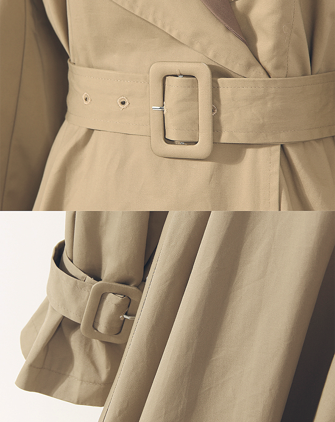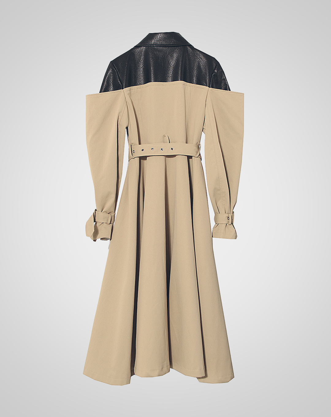 レザージャケットの切り替えがポイントのトレンチコート。切り替えがわかりやすいシルエットで、他にはないスタイリングを楽しめます。ハードすぎないデザインで、上品な印象を与えてくれる一着です。
