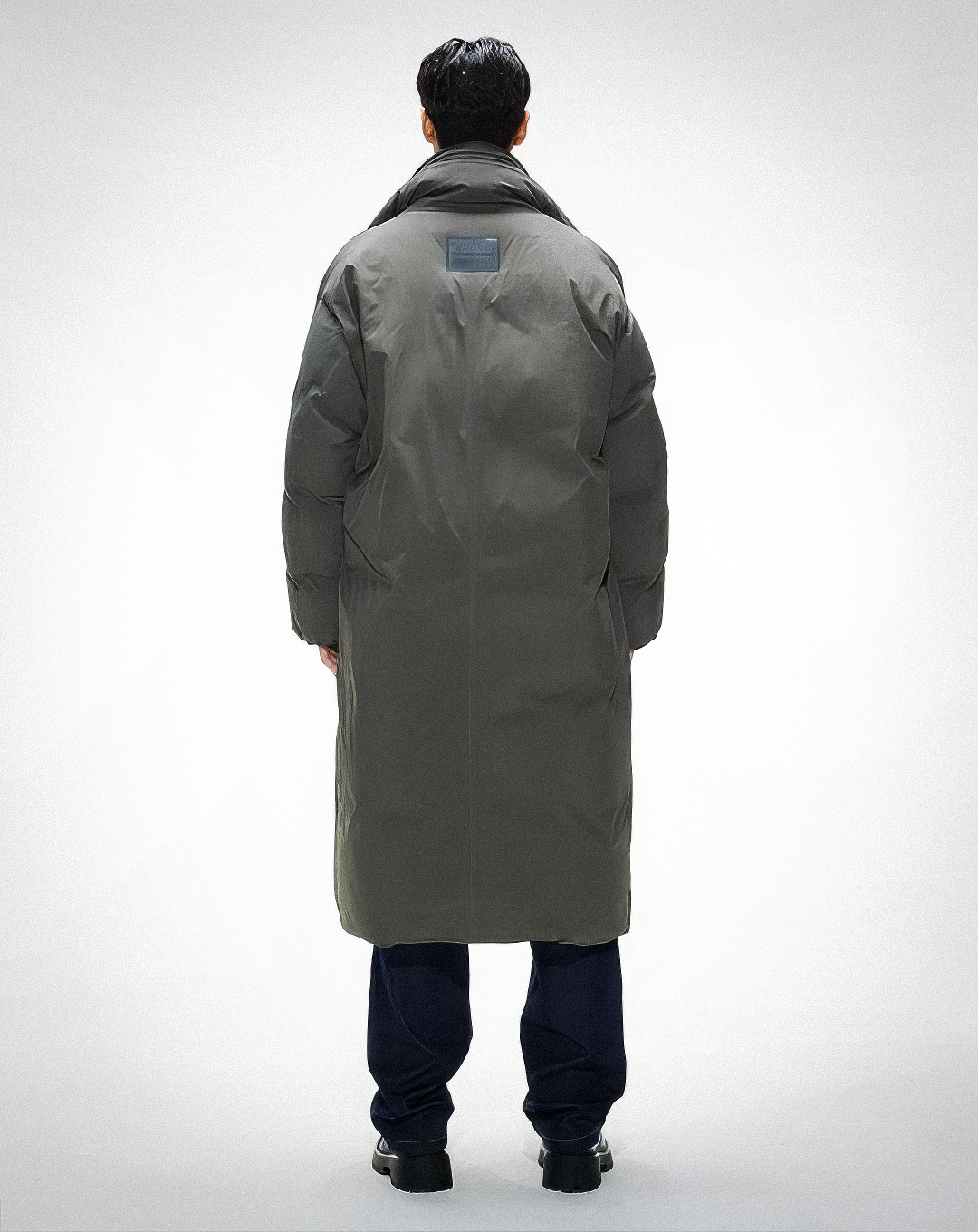 真冬の寒さから全身をしっかりと守る、メンズのロングダウンコート。膝下まで届くロング丈と、ふっくらとしたダウンのボリュームが特徴で、高い保温性を発揮します。首元は立ち上がりの良いスタンドカラーになっており、クリーンでミニマルな印象を与えます。ゆったりとしたオーバーサイズシルエットなので、厚手のインナーの上からもストレスなく着用可能です。3色展開で、シーンを選ばず着用できる、モダンなデザインの一着です。