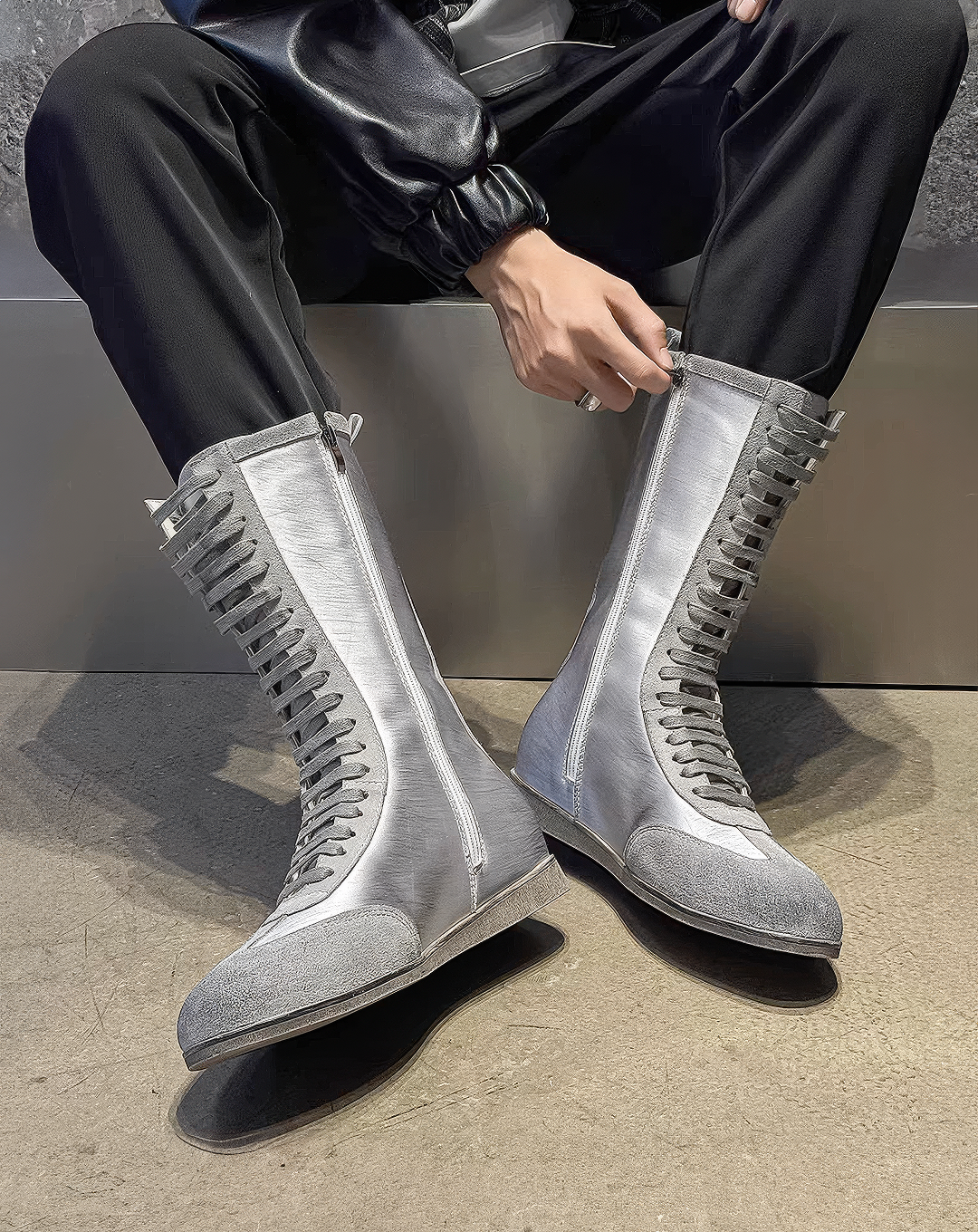 スポーティーなスニーカーのディテールとロングブーツのシルエットを融合させた、モダンなレースアップブーツ。最大の特徴は、外見からはフラットに見えながらも、2cmのインソールと3cmのアウトソールを組み合わせることで自然にスタイルアップを叶える計5.0cmの隠しヒール構造にあります。美しいレースアップデザインが足元に力強いアクセントを添え、サイドジップ仕様にすることでスムーズな着脱も実現しました。モードからストリートまで幅広いスタイリングに馴染む、機能美とデザイン性を兼ね備えた一足です。
