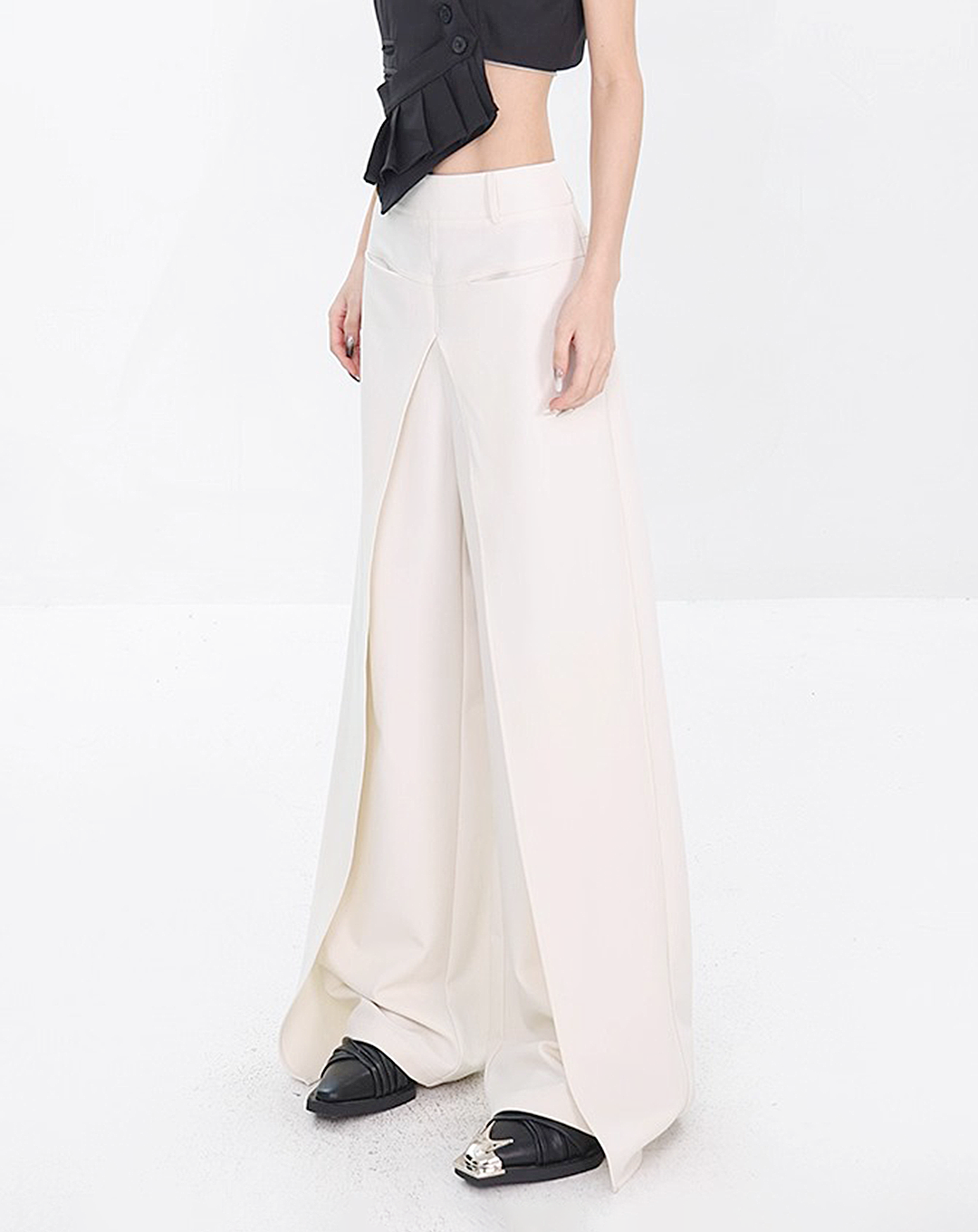 大胆なV字タックが印象的なワイドパンツ。動くたびに揺れるしなやかな生地が、シンプルながらも存在感のあるシルエットを描き出します。2色展開で、モノトーンコーデはもちろん、カラーアイテムとの組み合わせも映える洗練された一本です。